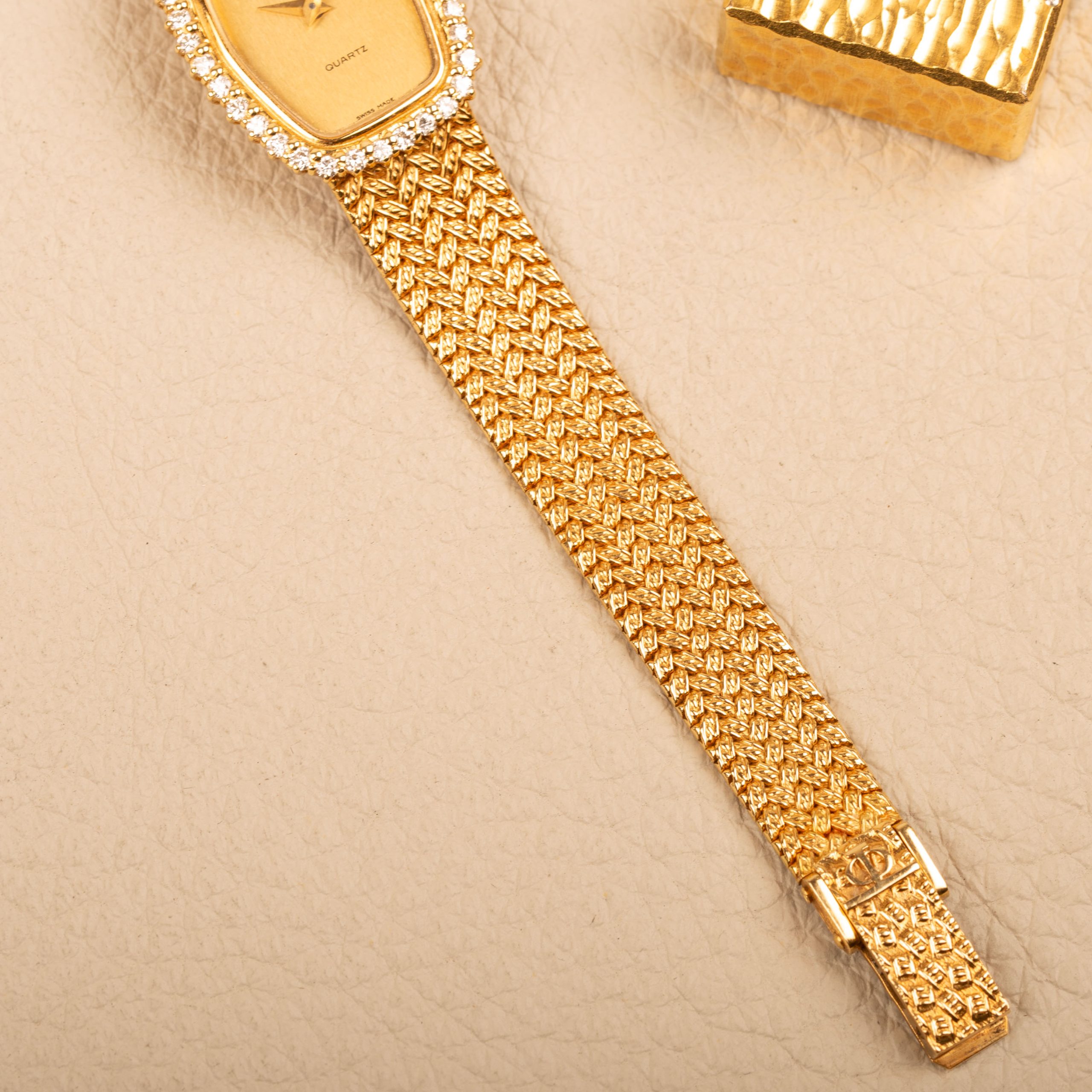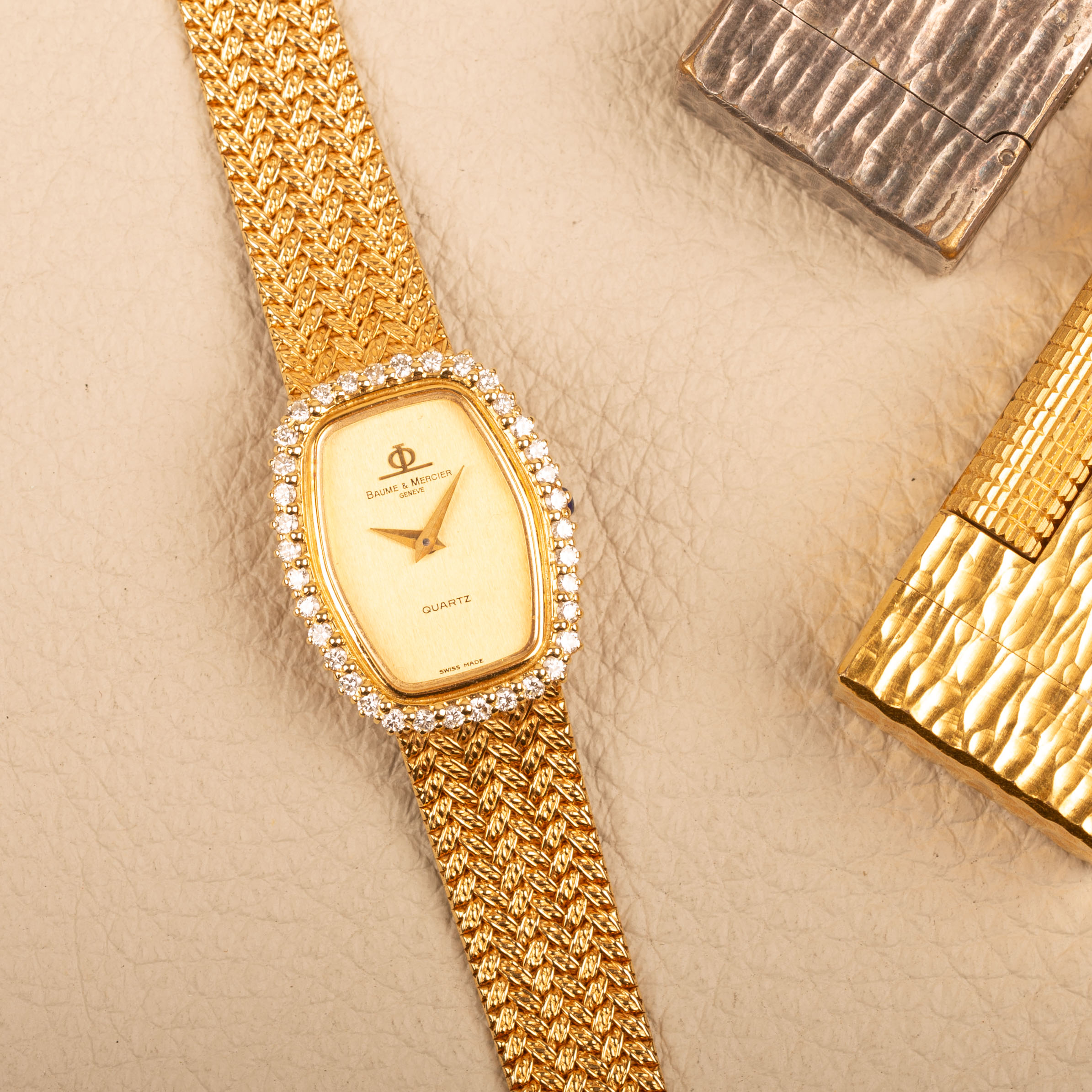 A super nice ladies watch from Baume & Mercier. Solid 18ct yellow gold with factory diamonds.